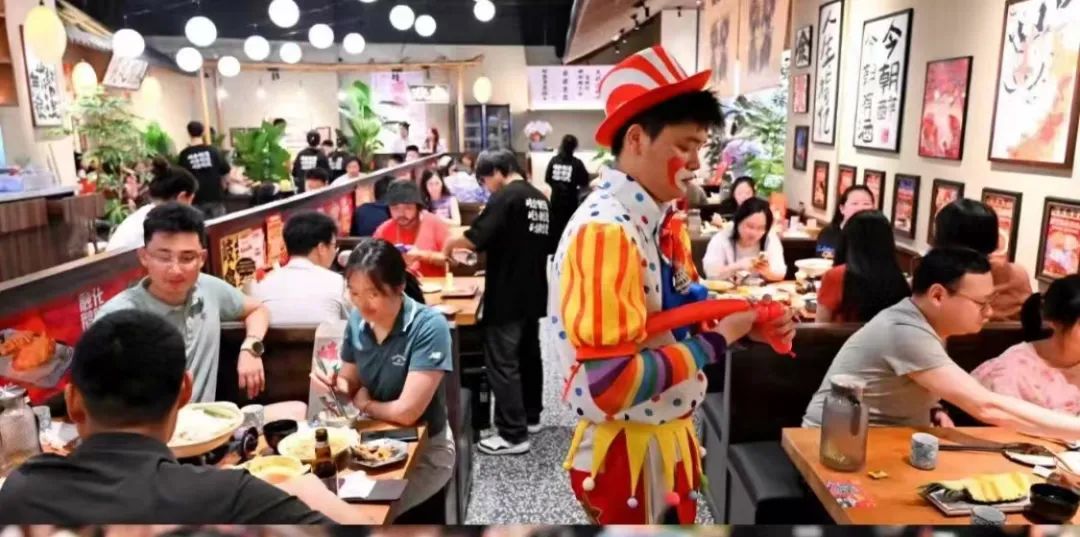 岐余食堂位于成都的一家新店,六一這天開業(yè),顧客盈門,大小朋友們?cè)陂T口打卡拍照。化身小丑的服務(wù)員,在門口給小朋友們折氣球,甚是歡樂。餐廳負(fù)責(zé)花花告訴內(nèi)參君,這天門店充卡率(充值300元贈(zèng)送雙人套餐及大禮包)一下達(dá)到了80%以上,排隊(duì)桌數(shù)破100。