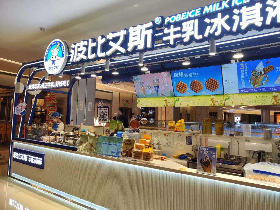 比如在海珠區(qū)保利廣場(chǎng),一家名叫波比艾斯的冰淇淋店位于商場(chǎng)4樓餐飲區(qū),面積約10平,主打現(xiàn)烤華夫冰淇淋,SKU在20-30個(gè),最低6元就能買到一支鮮奶甜筒,人均消費(fèi)13元左右。