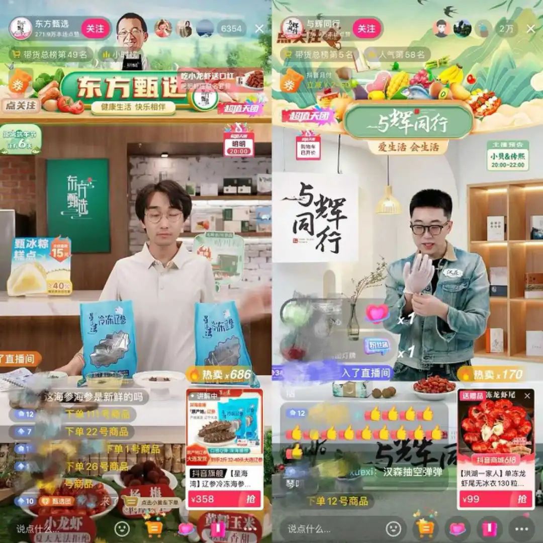 東方甄選(左)、與輝同行(右)