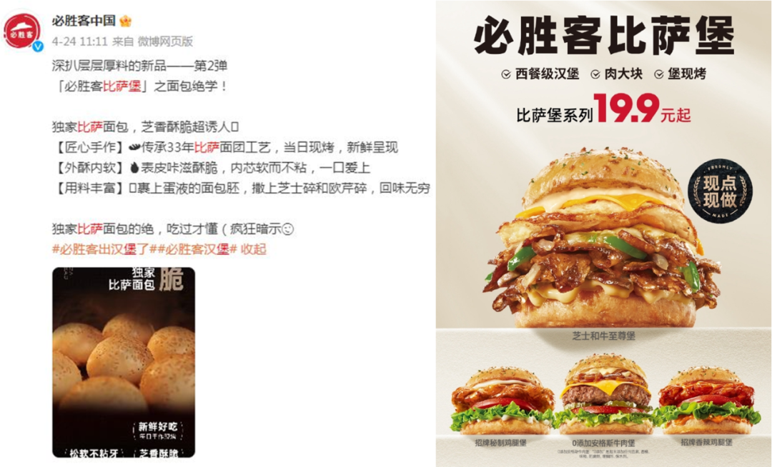 上個月,必勝客上線了原名為“比薩堡”的漢堡新品。該產(chǎn)品賣點為“用披薩面團(tuán)做的面包”,而且都是“現(xiàn)點現(xiàn)做”。當(dāng)一個專業(yè)做披薩的開始做漢堡,我們就應(yīng)該知道,這一次是試圖做些大動作。