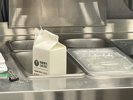然而,茉酸奶的現(xiàn)制酸奶到底是不是酸奶?酸奶含量到底有多少?去年因反式脂肪酸事件,茉酸奶更換了主要酸奶基底。氫消費(fèi)在走訪中發(fā)現(xiàn),茉酸奶門店在制作奶昔過(guò)程中添加的主要原料標(biāo)簽為“特醇厚乳”(含乳飲料),難以看出這是品牌對(duì)外宣稱的“有機(jī)酸奶”。