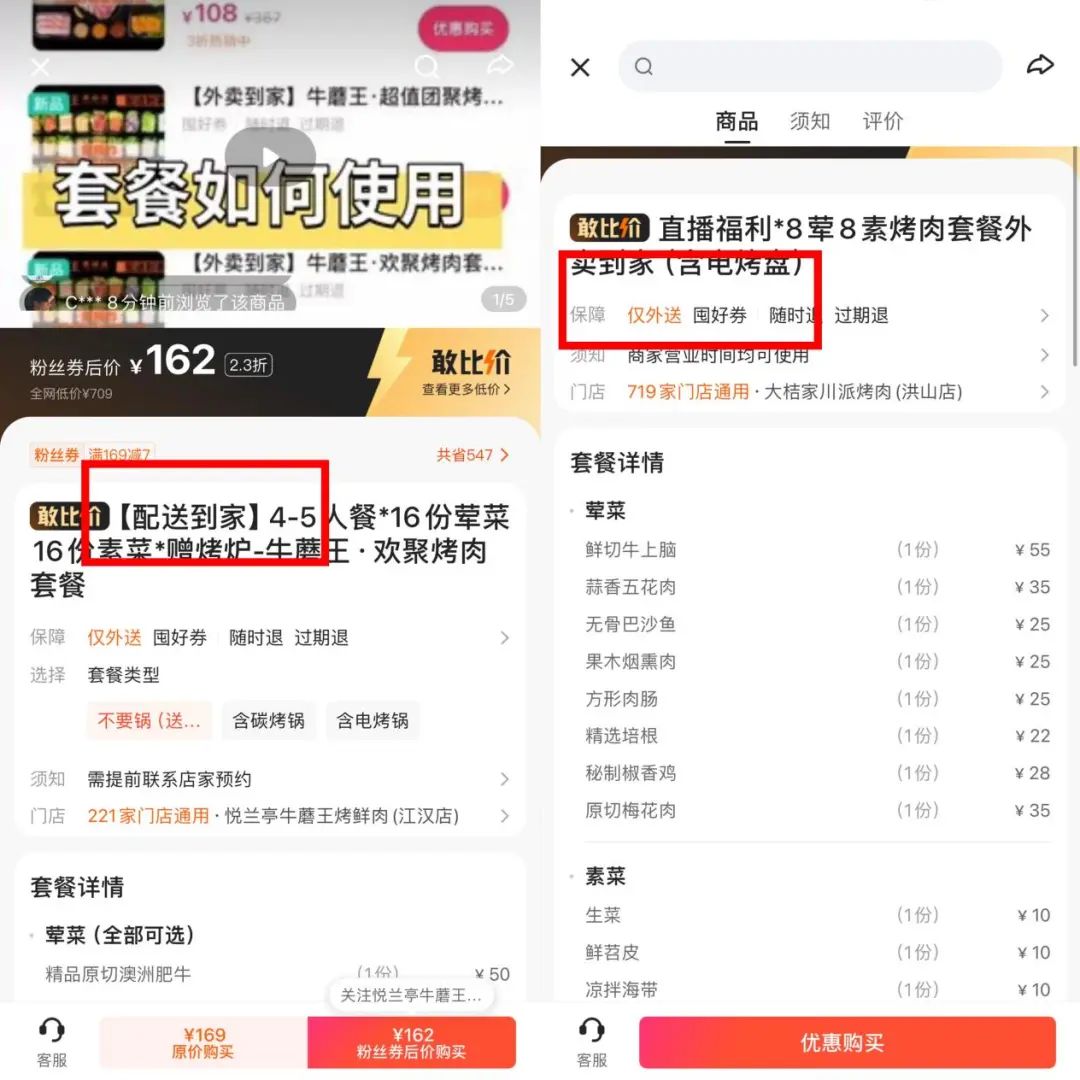 此外,目前快手APP內(nèi)尚未單獨放置外賣入口,用戶需要在“團購優(yōu)惠”入口內(nèi)搜索“外面”關(guān)鍵詞,才能找到商品。
