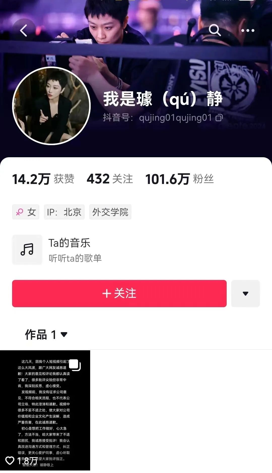 不過璩靜發(fā)布的主要是“員工鬧分手提離職我秒批,為什么要考慮員工的家庭。我又不是她婆婆,我主要考慮的是他能不能在他的崗位,及時給我交付結果!薄斑B續(xù)出差50天我也沒覺得苦沒有累,你有什么資格跟我說,你老公受不了了那你回去!边@種極具爭議的視頻。