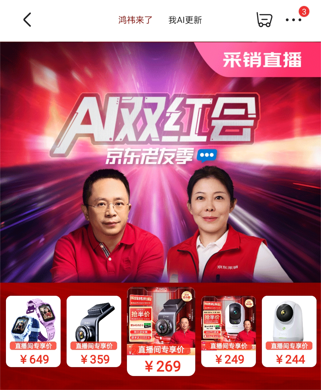 長達兩個半小時的直播中,許冉和周鴻祎身穿京東采銷工作服,圍繞AI大模型和造車等話題展開了交流,期間還“帶貨”了不少360的產品,吸引600萬人次圍觀。
