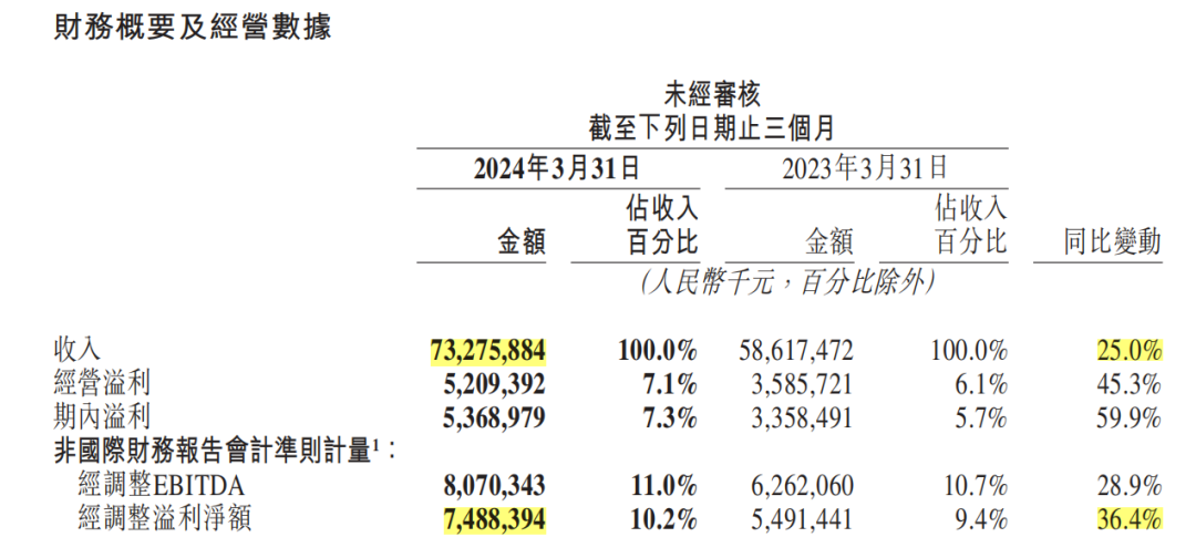 6月6日,美團(tuán)(3690.HK)發(fā)布2024年第一季度業(yè)績報(bào)告,該季度,美團(tuán)實(shí)現(xiàn)營收733億元,同比增長25%;經(jīng)調(diào)整溢利凈額74.88億元,同比增長36.4%。營收與利潤雙增,美團(tuán)基本盤依舊穩(wěn)健。