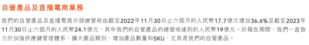 其2024財年中報顯示,截至2023年11月30為止的六個月內(nèi),東方甄選自營產(chǎn)品及直播電商分部的凈營收,從上年同期的人民幣17.7億元,同比增加了36.6%至24.1億元。