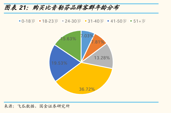 不過(guò)熱鬧背后值得警惕的是,比音勒芬的核心消費(fèi)群體年齡偏大。國(guó)金證券研報(bào)顯示,購(gòu)買(mǎi)比音勒芬品牌的客群,約有72% 的人年齡在30歲以上,其中40歲以上的人占比約35%。