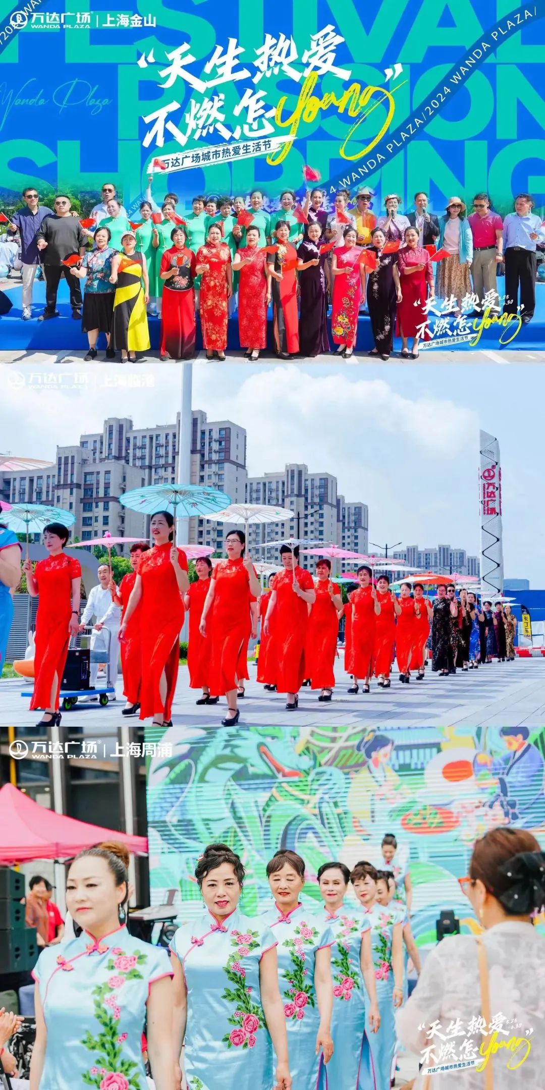 上海周浦萬達廣場、上海金山萬達廣場和上海臨港萬達廣場組織時尚奶奶團開展滬上旗袍秀,成為商場靚麗的一道風(fēng)景線,現(xiàn)場吸引眾多消費者駐足欣賞。