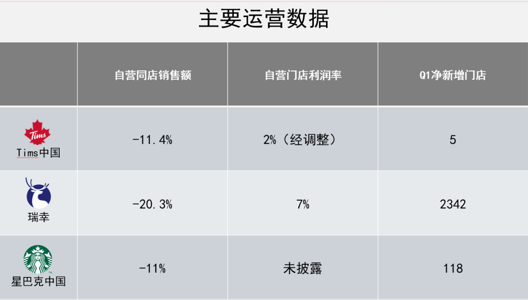 價(jià)格戰(zhàn)下無(wú)贏家。與瑞幸、星巴克中國(guó)一樣,一季度,Tims同店銷售額也出現(xiàn)了大幅度下滑。