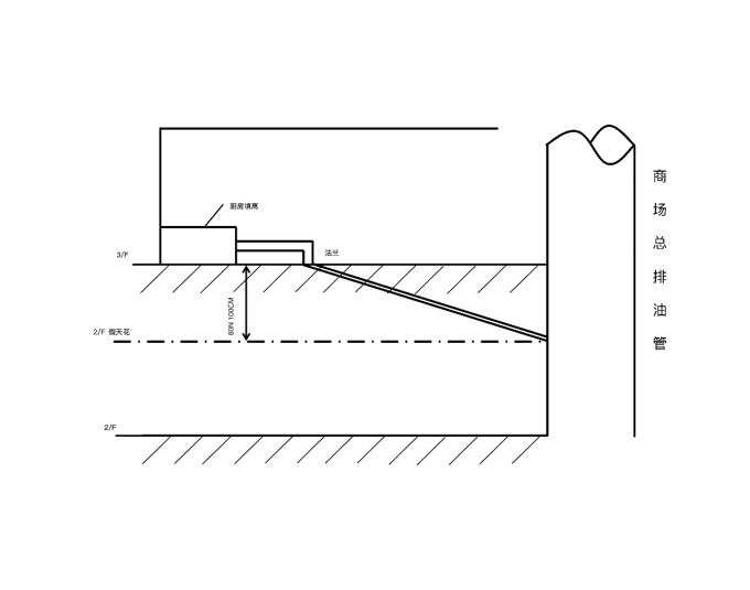 有個餐飲租戶,租賃位置在三樓。按環(huán)保要求,一級隔油在廚房,二級隔油在商場。因此,租戶在廚房需墊高地面,而后與商場的總排油管相連,商場的總排油管連接至商場隔油池,達(dá)標(biāo)后再排向公網(wǎng)。