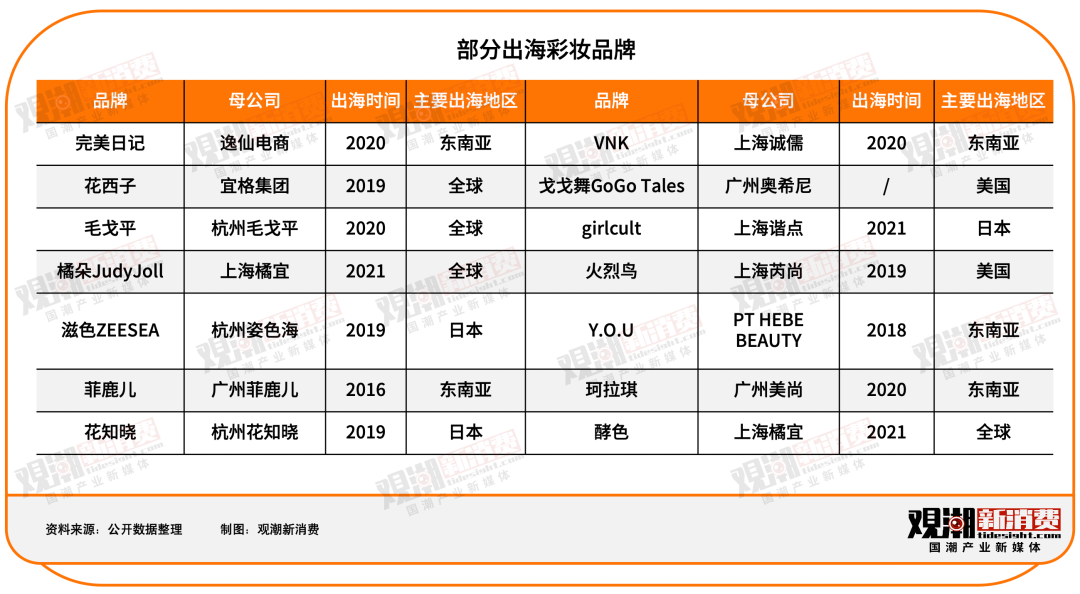 出海品牌中,不僅有完美日記、花西子等已成功開(kāi)拓國(guó)內(nèi)市場(chǎng),希望在海外尋找第二增長(zhǎng)曲線的成熟品牌,也包括直接在海外市場(chǎng)本土化孵化的新品牌,即扎根于海外本土市場(chǎng),通過(guò)全渠道高密度的點(diǎn)位覆蓋和差異化的服務(wù)深耕當(dāng)?shù)厍郎疃确咒N(xiāo)來(lái)完成出海的品牌,例如深耕東南亞的菲鹿兒、Y.O.U等。