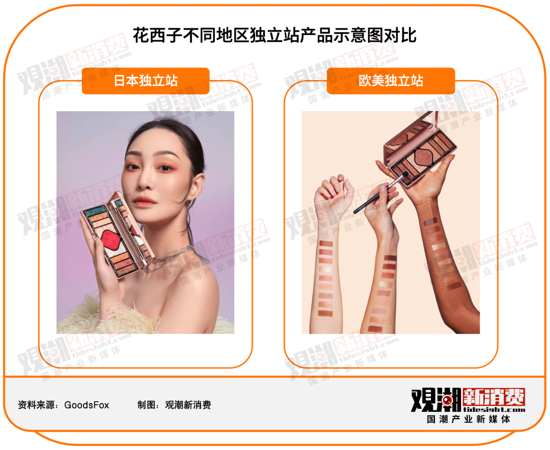 經(jīng)過(guò)數(shù)年探索,花知曉團(tuán)隊(duì)的風(fēng)格彩妝打法已經(jīng)逐步成熟。通過(guò)契合當(dāng)?shù)匚幕钠放贫ㄎ缓王r明的風(fēng)格東渡日本,再逐步擴(kuò)大版圖,因地制宜,根據(jù)不同地區(qū)喜好調(diào)整產(chǎn)品策略,從而完成出海。
