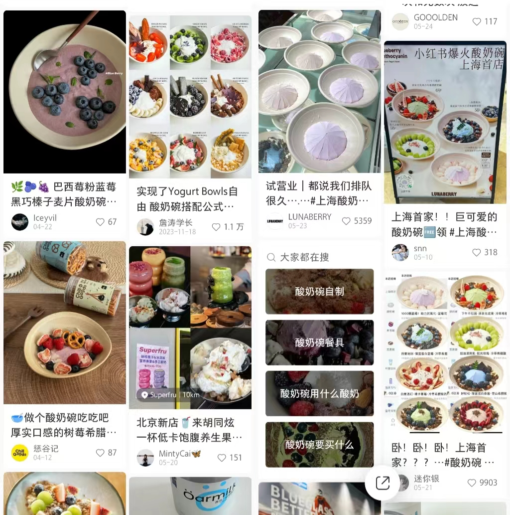 5月,上海首家酸奶碗專門店LUNABERRY開業(yè)即火,一躍成為上海大眾點(diǎn)評靜安區(qū)熱門榜首位,引發(fā)許多小紅書網(wǎng)友打卡,并帶動“上海酸奶碗”話題熱度增長。