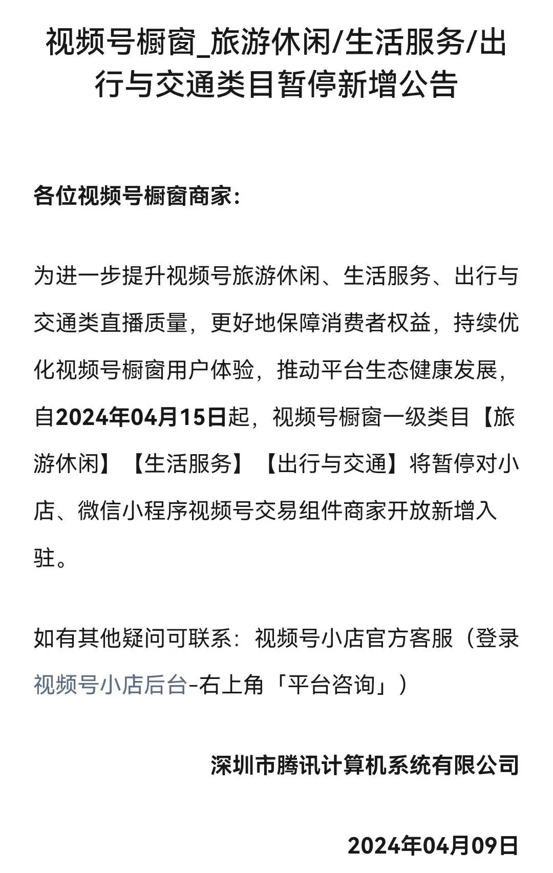 值得一提的是,今年4月,騰訊已經(jīng)暫停了旅游休閑、生活服務(wù)和出行與交通等類目下44個(gè)三級類目的新增入駐。