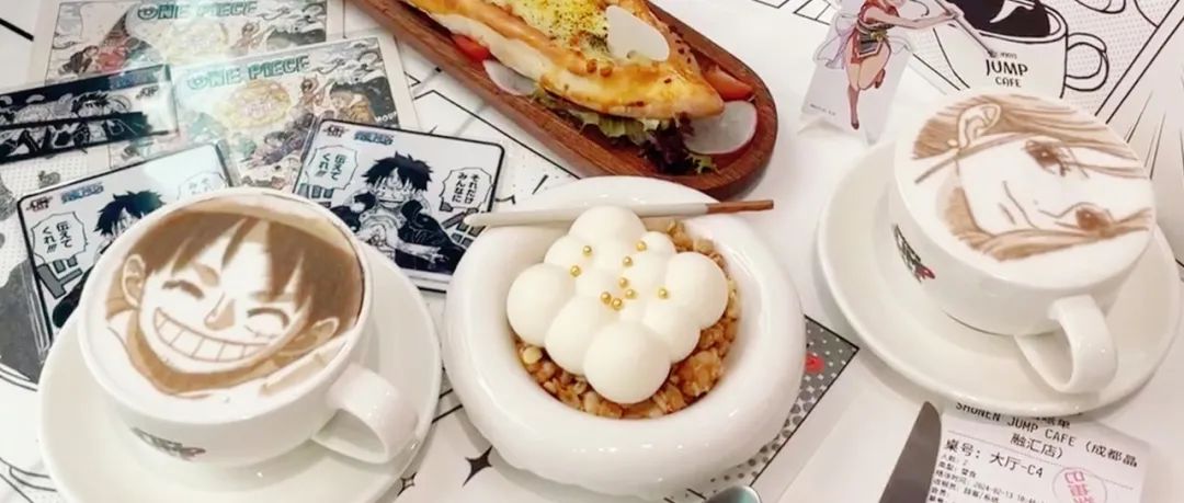 比如漫咖會(huì)推出與主題貼合的飲品。SHONEN JUMP CAFE不僅有動(dòng)漫拉花咖啡,還復(fù)刻了二次元里的餐品,每次推新都是網(wǎng)友打卡曬照的C位。