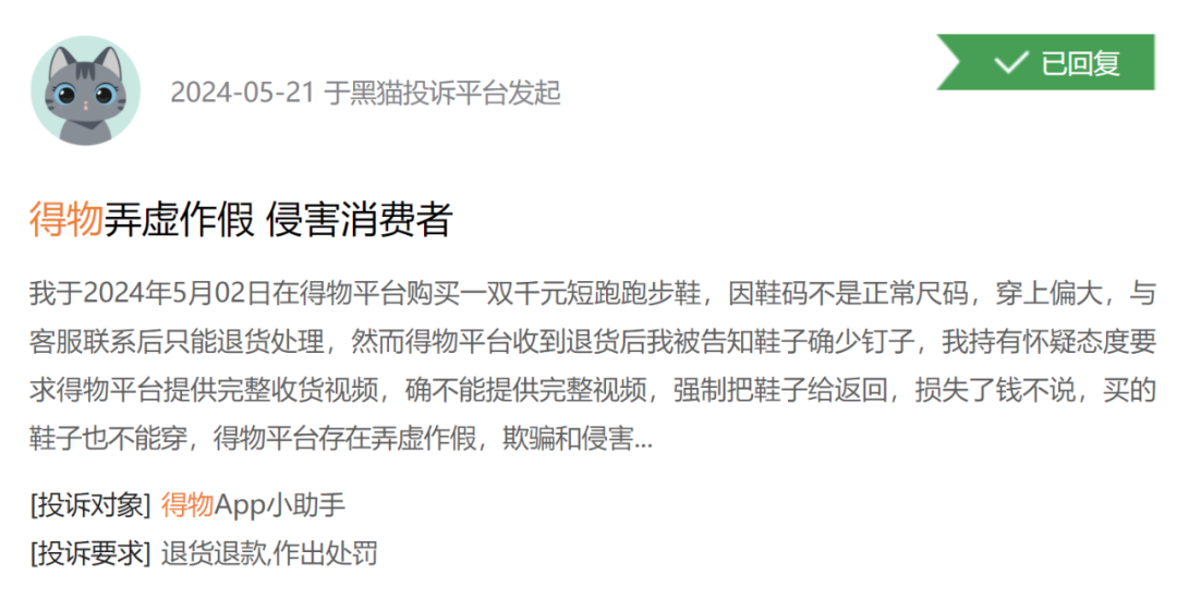 自2024年5月以來,不斷有消費(fèi)者反映在得物下單購買的商品在臨近發(fā)貨時(shí)間被平臺(tái)單方面取消,且補(bǔ)償措施僅為幾張面額較小、無法疊加使用的優(yōu)惠券,此舉引發(fā)了大量消費(fèi)者的不滿。