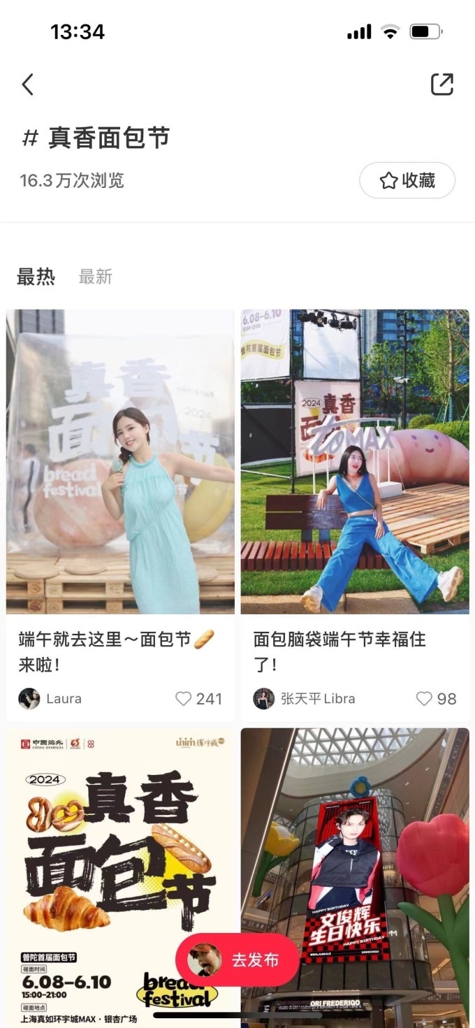 本次烘焙市集,最終憑借良好口碑及在線的宣發(fā)節(jié)奏,收獲小紅書及點評平臺1600+篇UGC筆記,真香面包節(jié)在雙平臺話題數(shù)據(jù)達23.4W次瀏覽。在粗門平臺的上海首頁登上熱門,全平臺總曝光12W+。