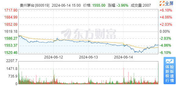 6月13日,貴州茅臺股價(jià)一度跌至1553.15元/股,觸及1553.15元/股的年內(nèi)低點(diǎn)。根據(jù)統(tǒng)計(jì),6月1日至13日,貴州茅臺總市值已累計(jì)蒸發(fā)超千億元。