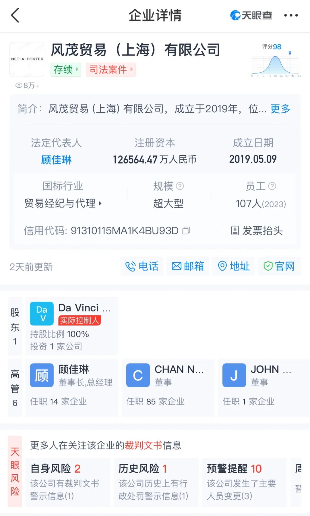 據(jù)了解,風(fēng)茂貿(mào)易是奢侈珠寶品牌卡地亞母公司歷峰集團(tuán)與阿里巴巴的合資企業(yè),負(fù)責(zé)運(yùn)營YNAP(由Net-A-Porter和Yoox兩大奢侈品電商平臺合并而來)在中國市場的業(yè)務(wù),同時(shí)也是Net-A-Porter中國的運(yùn)營商。