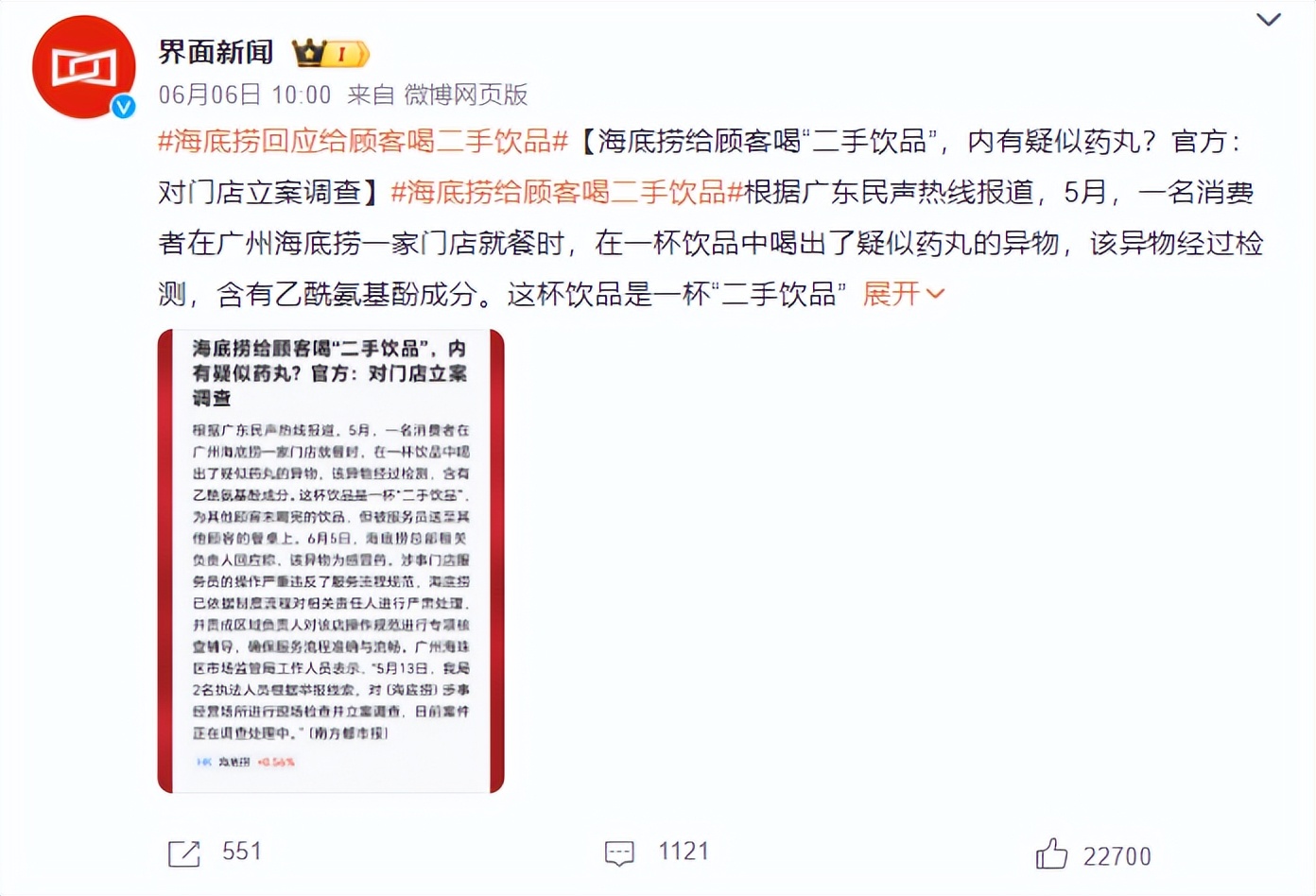 據(jù)媒體報道,該網(wǎng)友稱,當天吃了牛蛙、土豆、豆芽、鹵豬蹄、雞腳、鹵肥腸等不應(yīng)該會導(dǎo)致染色的食物。當時,火鍋負責(zé)人說,舌頭變黑可能是因為鐵鍋。但是6月15日,楠火鍋官方賬號在該網(wǎng)友的評論區(qū)做出了回應(yīng),表示工作人員做出的回復(fù)不實,將安排博主及同行人去醫(yī)院檢查,并將鍋底樣品送檢,給所有顧客一個交代。事情引發(fā)關(guān)注后,有多位網(wǎng)友表示自己也遇到過同樣的事情,那時還以為是生病了。