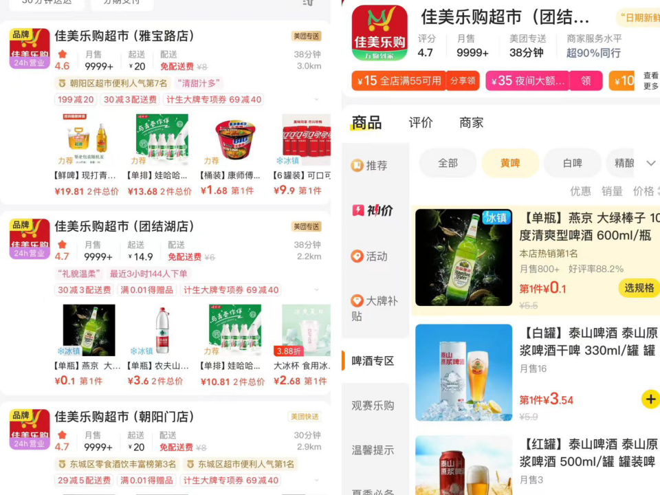 2020年8月,他開出了第一家佳美樂購(gòu)便利店,該店是以服務(wù)外賣用戶為主的新型便利店,開業(yè)35天后,收獲月外賣訂單過萬的佳績(jī),同年年底,佳美樂購(gòu)又在北京新增了四家類似門店。截至目前,佳美樂購(gòu)已在美團(tuán)平臺(tái)上上線了20多家主打前置倉(cāng)模式的新型便利店。