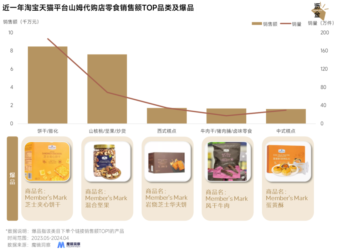 第一,零食賣得最好,占據(jù)山姆代購半壁江山。零食爆品全部來自山姆自有品牌,并且是小紅書上各種山姆零食必買榜的?。