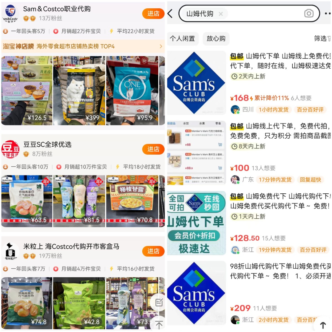 左:山姆代購淘寶店;右:閑魚上的山姆代購