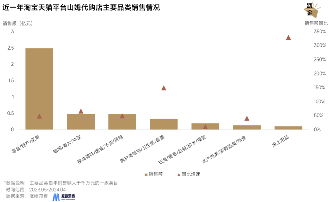 近一年,僅淘寶天貓上的山姆代購店賣貨就超4億元,品類覆蓋吃、喝、穿、用等生活方方面面。