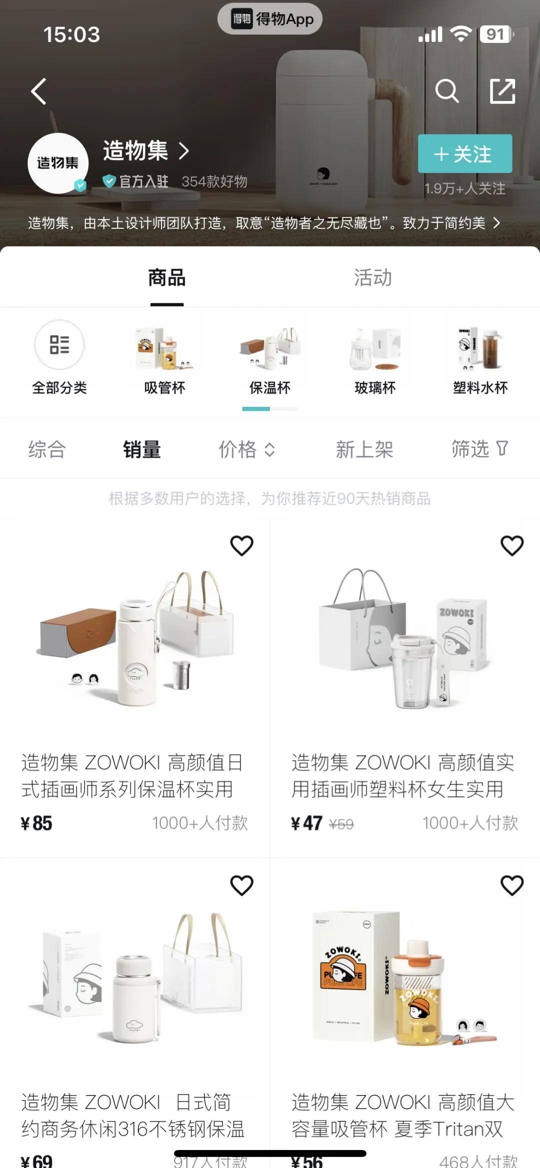 2022年9月,主營(yíng)保溫杯的造物集剛剛?cè)腭v平臺(tái)的時(shí)候,這支年輕的電商新軍對(duì)得物的印象還是“很多人在上面買潮鞋”以及“潮人聚集地”。