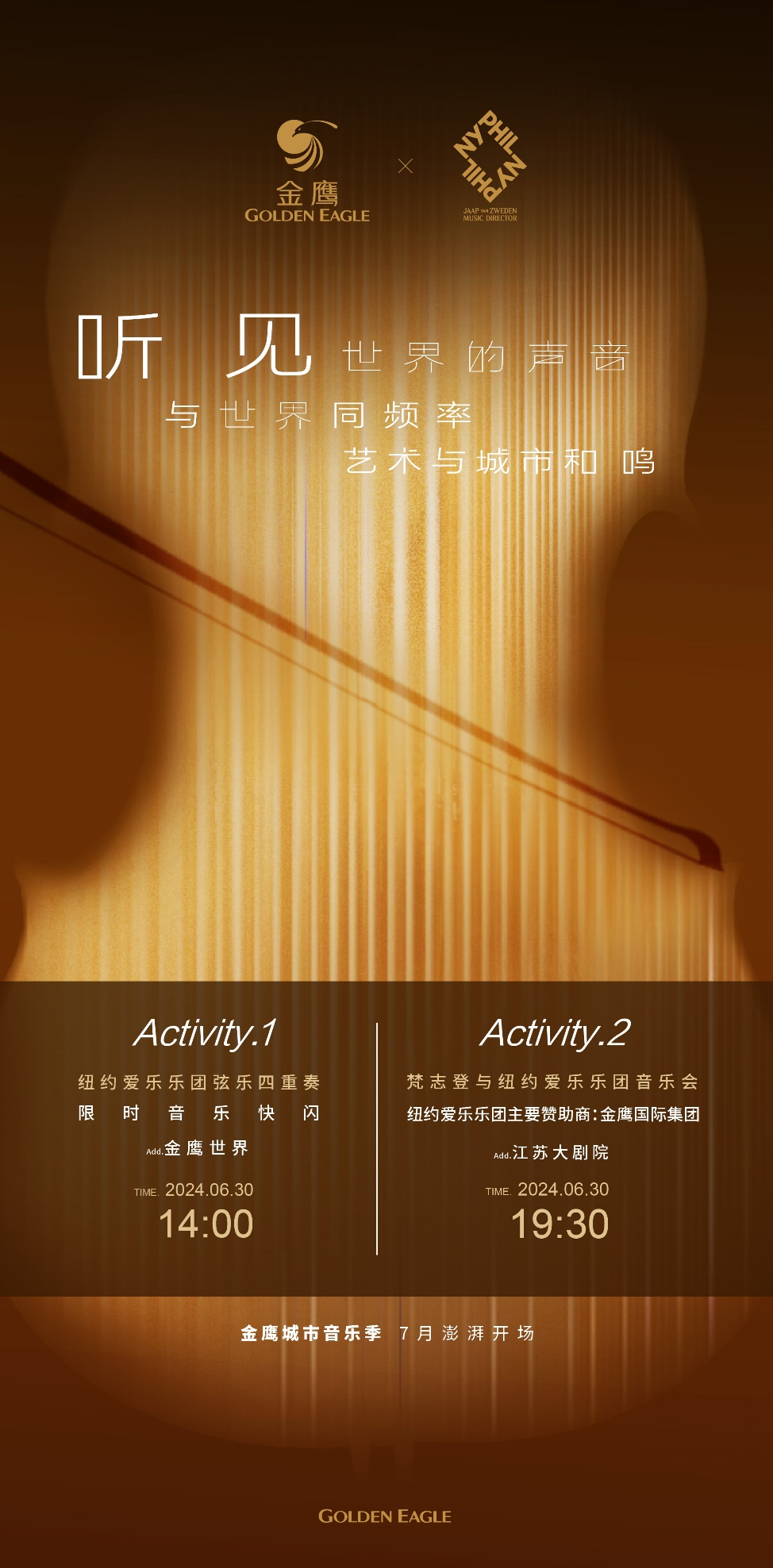 6月30日,金鷹集團特邀世界頂尖的紐約愛樂樂團,共啟一場史詩級的音樂盛宴!屆時,紐約愛樂樂團杰出的演奏家們將現(xiàn)身南京金鷹世界,獻上一場激動人心的“限時音樂快閃”演出。此外,南京(金鷹)愛樂樂團、南京藝術學院音樂學院的師生們也將受邀同場獻藝,為南京市民共同呈現(xiàn)一場視聽交織、心靈震撼的藝術盛宴!