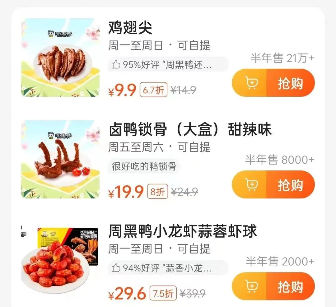 同時(shí),周黑鴨還推出了中低價(jià)格帶產(chǎn)品,比如9.9元至14.9元的甜辣小雞腿、干煸辣子雞。
