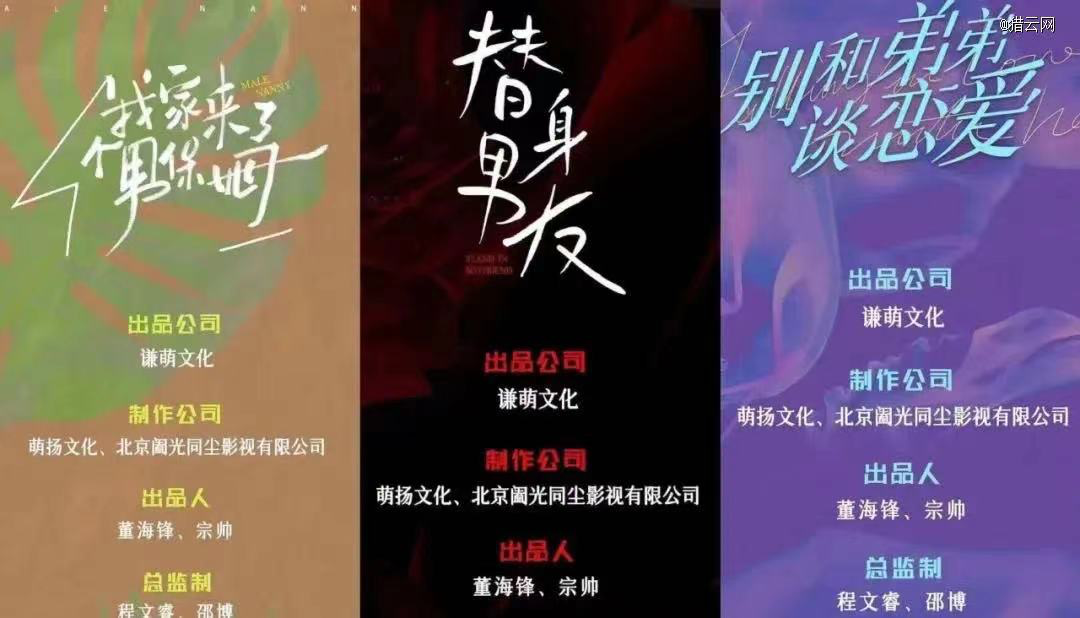 例如,她和丈夫董海鋒成立的謙萌文化,在618期間宣布即將投拍三部短劇,分別是:《替身男友》、《我家來了男保姆》和《別跟弟弟談戀愛》。