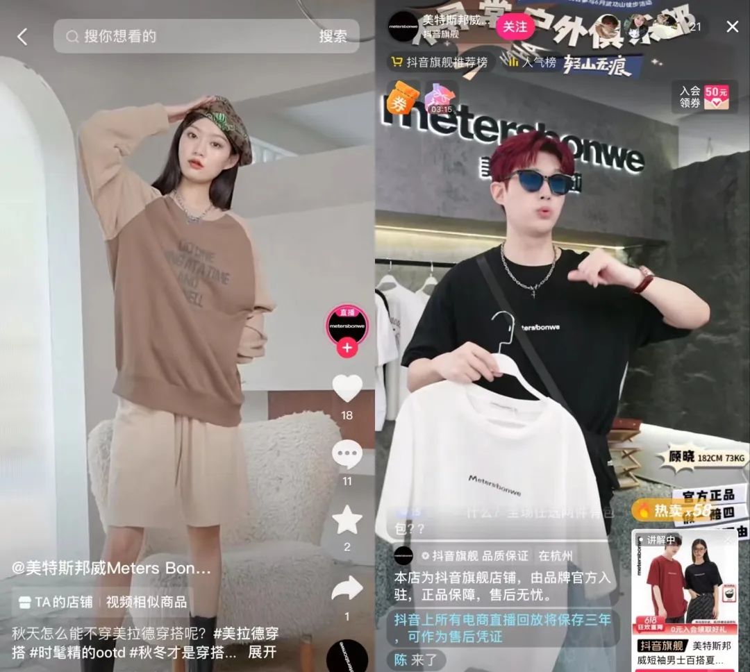 直播確實給美邦服飾帶來了新的增長動力。數(shù)據(jù)顯示,美特斯邦威抖音官方旗艦店賬號開通后,僅3個月就實現(xiàn)91.9萬粉絲積累,2023年雙11期間天貓旗艦店實現(xiàn)環(huán)比增長269%。