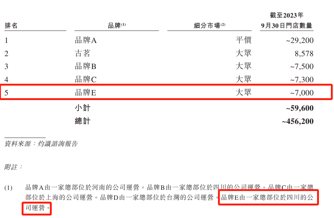 2021年9月,書亦曾宣稱對外擁有超7000家門店,在行業(yè)內(nèi)排名第二,僅次于蜜雪冰城。而2024年初,古茗遞交招股書顯示,根據(jù)灼識咨詢報告,截至2023年9月30日,書亦門店已然掉隊排名第五。