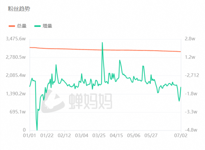蟬媽媽數(shù)據(jù)顯示,今年以來,截至7月2日,東方甄選賬號掉粉158萬,而與輝同行則漲粉1742萬。同時,在6月帶貨達(dá)人榜上,與輝同行排名第2,僅次于廣東夫婦,而東方甄選直播間則跌出了前10,排名第13。
