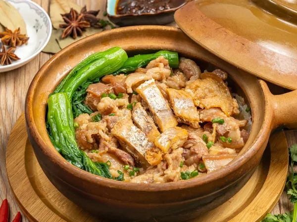 制作一份煲仔飯并不難,用砂鍋當(dāng)作烹飪?nèi)萜,先在鍋底均勻刷油,隨后鋪入大米與水,待水沸騰米飯煮至七分熟之際,加入臘腸、臘肉、排骨、嫩滑牛肉及各類時蔬等配料,再以小火慢燉至熟即可。