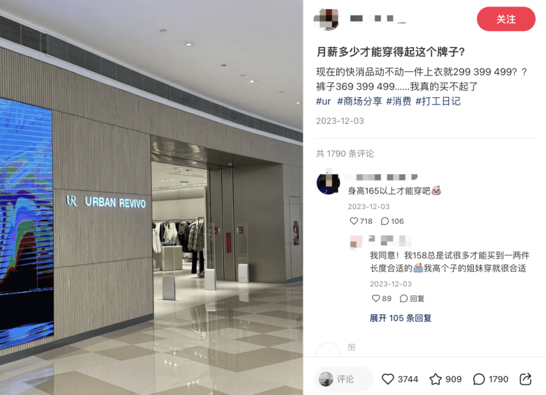UR還有被很多網(wǎng)友吐槽的一點是其所謂的“快奢”更多是體現(xiàn)在價格上,而非實質(zhì)的品質(zhì)提升。“月薪多少才能穿得起這個牌子?”在小紅書上,有網(wǎng)友發(fā)筆記表示,“現(xiàn)在的快消品動不動一件上衣就299 399 499,褲子369 399 499,我真的買不起了!