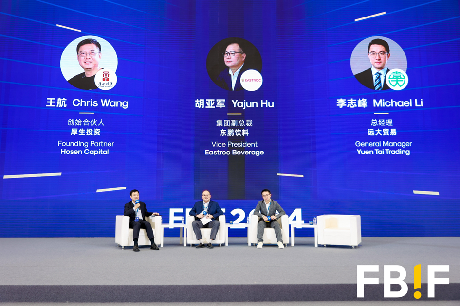 從左至右分別為:厚生投資創(chuàng)始合伙人王航、東鵬飲料集團(tuán)副總裁胡亞軍、遠(yuǎn)大貿(mào)易總經(jīng)理李志峰