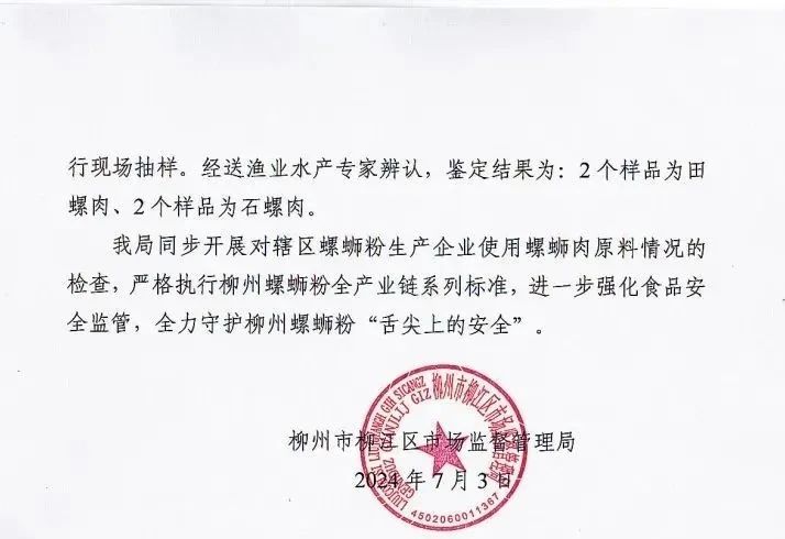 知名美食博主在售螺螄粉疑用福壽螺?官方通報來了