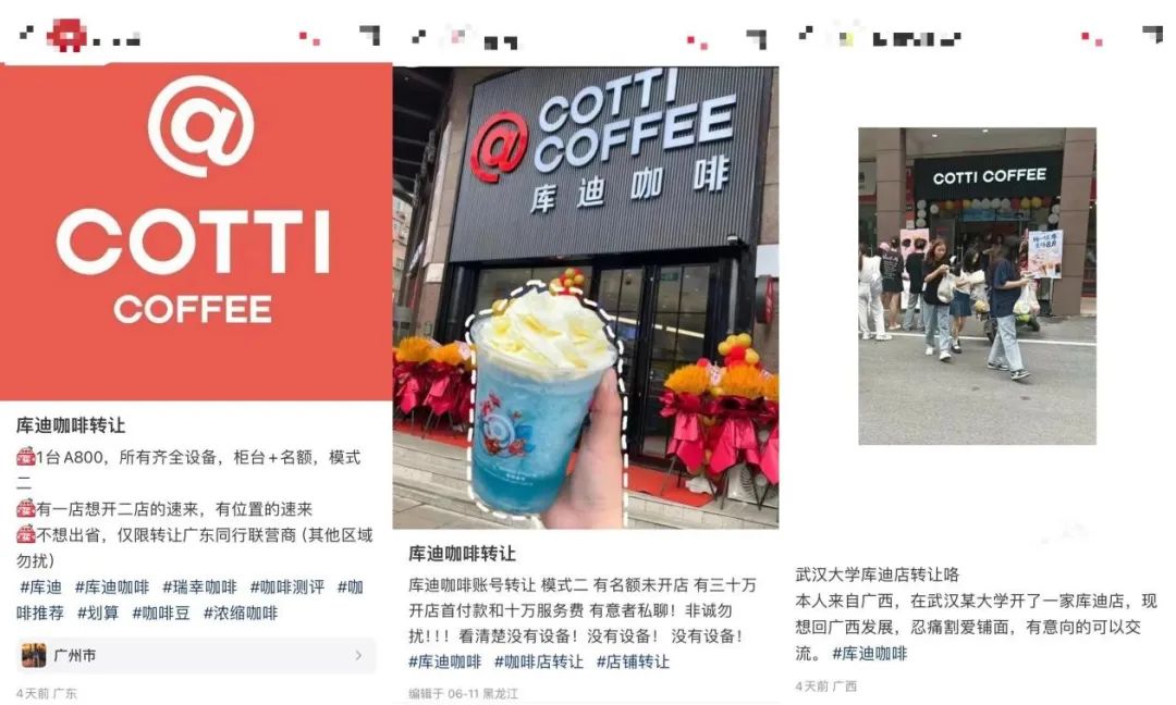 此外,在小紅書等社交媒體上,關于“轉讓庫迪門店”的帖子也在迅速增加,且出現(xiàn)的IP更是來自于全國各地。