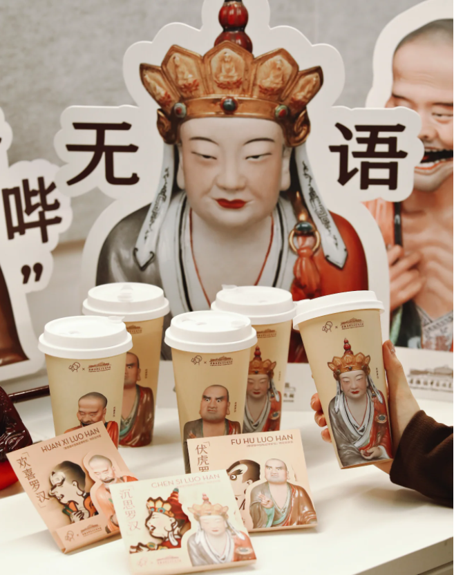 去年11月,喜茶聯(lián)合景德鎮(zhèn)中國陶瓷博物館聯(lián)名推出了「佛喜茶拿鐵」,火爆出圈,被打工人熱捧。