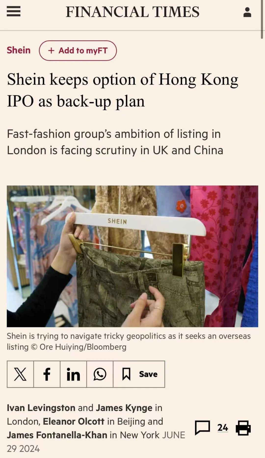 6 月 29 日,據(jù)金融時(shí)報(bào)報(bào)道, Shein 制定了在香港上市的后備計(jì)劃,這背后是其在倫敦進(jìn)行首次公開募股的雄心遭遇了越來越嚴(yán)格的審查。