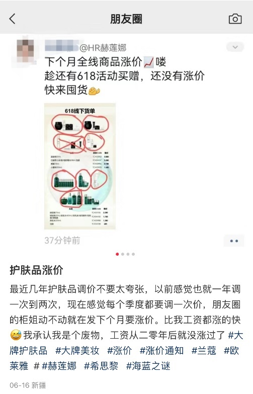在一些業(yè)內人士看來,這也是為618造勢的一種方式,部分區(qū)域代理商聽到漲價消息后會提前拿貨,而不少柜姐也在朋友圈或小紅書預告漲價消息,提醒消費者在漲價之前以促銷價格進行囤貨。