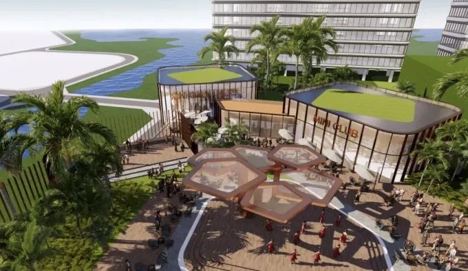 如取意海南非物質(zhì)文化遺產(chǎn)黎族傳統(tǒng)紡染織繡技藝,打造標(biāo)志性紅橙盒子項(xiàng)目;以瀑布水系、層層退臺為創(chuàng)意亮點(diǎn),營造立體式雨林瀑布社交花園氛圍;深度融合科技和交互體驗(yàn),呈現(xiàn)裸眼3D折角巨幕,打造城市網(wǎng)紅打卡地。整個項(xiàng)目,實(shí)現(xiàn)室內(nèi)室外一體化的“無界”生態(tài)綠色融合。