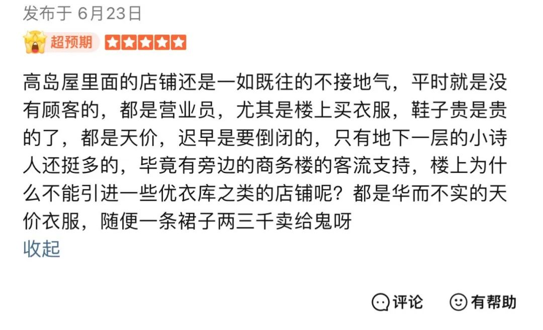 梅隴鎮(zhèn)伊勢(shì)丹已經(jīng)不是第一家業(yè)績(jī)慘淡的日系百貨,開(kāi)在上海長(zhǎng)寧古北商圈日本人集聚區(qū)的另一家日系高端百貨高島屋,在2019年到2021年的三年里,平均虧損也都在5000萬(wàn)。