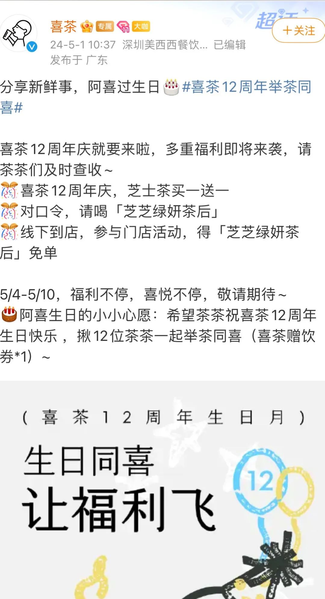 今年五月,喜茶為慶祝12周年推出買一送一限時活動,覆蓋輕乳茶、茗茶、厚乳茶等不同系列產(chǎn)品,用券后相當一部分飲品單價低至個位數(shù),不少網(wǎng)友表示“堪比蜜雪冰城”。