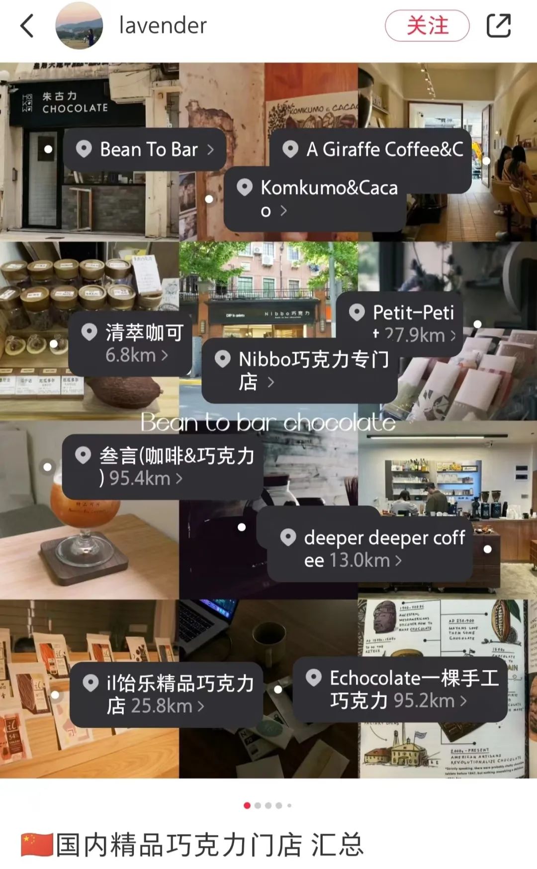 將Lavender的帖子和評論區(qū)回復(fù)結(jié)合起來,你就能得到一幅“中國精品巧克力”地圖。北京、上海、廣州、深圳、武漢、成都、貴陽……從南到北,從東到西,許多城市都有自己的精品巧克力店。