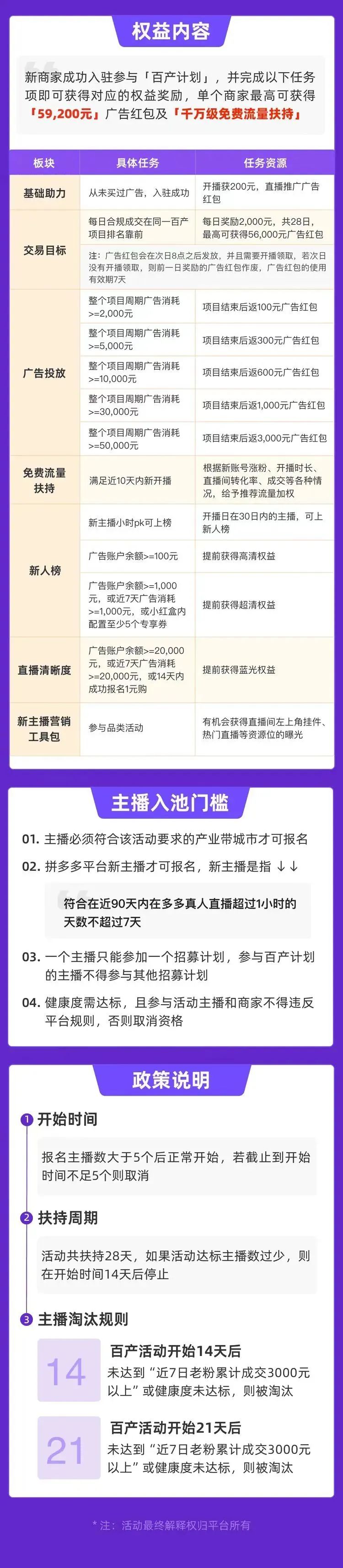 日前,拼多多開啟家居百貨大件商品貨盤商家直播項目內(nèi)測招商,共計20個名額。