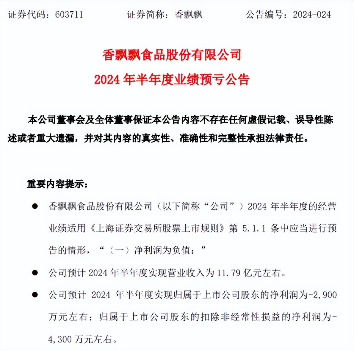 圖片來源:香飄飄2024 年半年度業(yè)績預(yù)虧公告