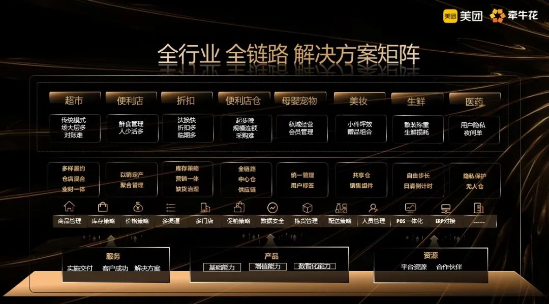 好特賣負(fù)責(zé)人所說的美團(tuán)牽;ㄏ到y(tǒng),是一套從“產(chǎn)品、服務(wù)、資源”三個維度為即時零售商家提供支撐的全鏈路數(shù)字化解決方案。